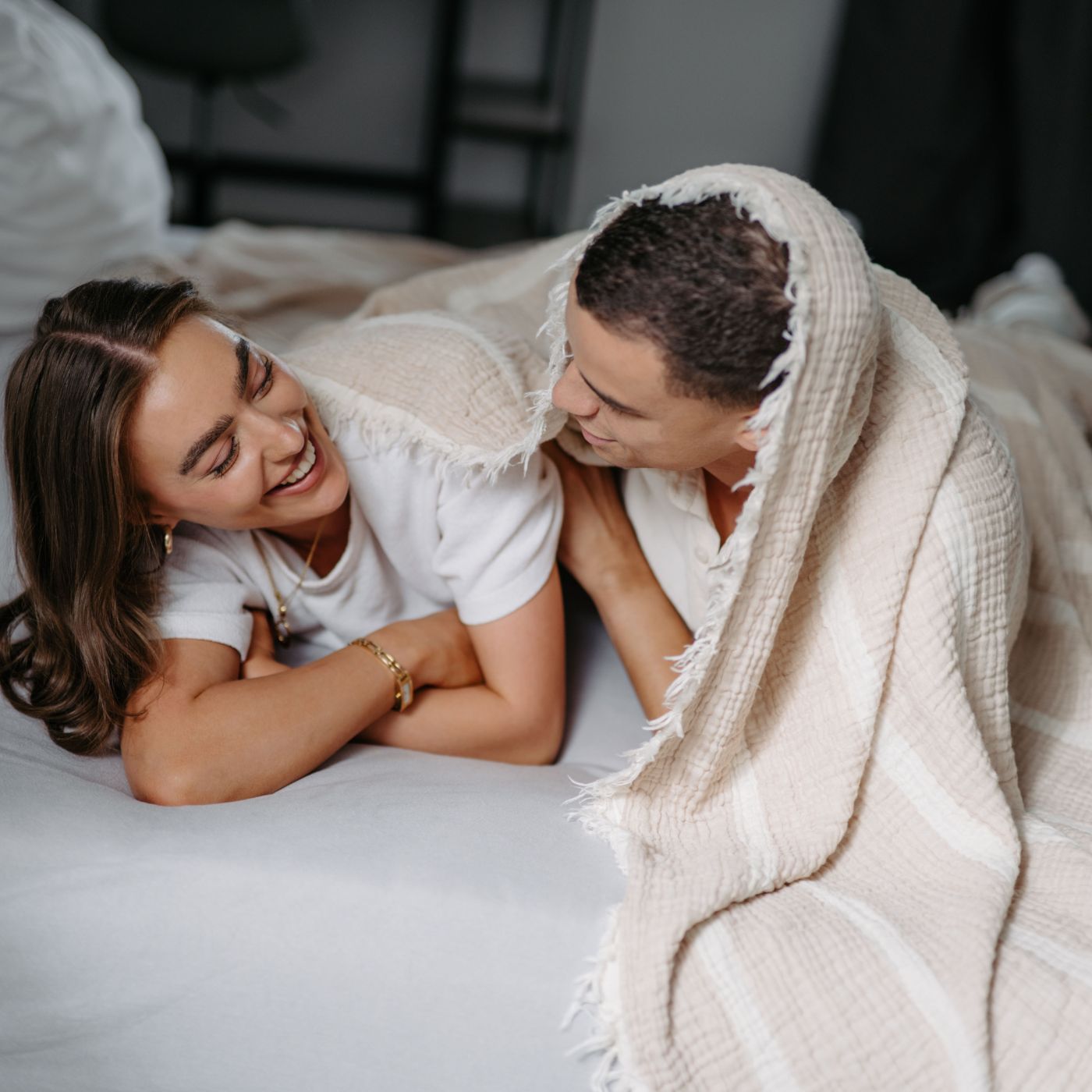 Die Decke hat eine natürliche, angenehme Struktur mit dem typischen „Crinkle“-Effekt. Sie schmiegt sich sanft an Deine Haut an und ist ein echter Wohlfühlbegleiter.